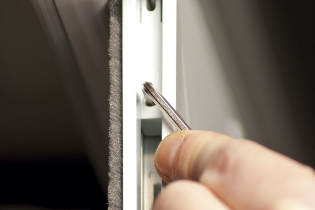 Zudem kann das Insektenschutzrollo über die integrierte Wartungsklappe mit wenig Aufwand entnommen werden.